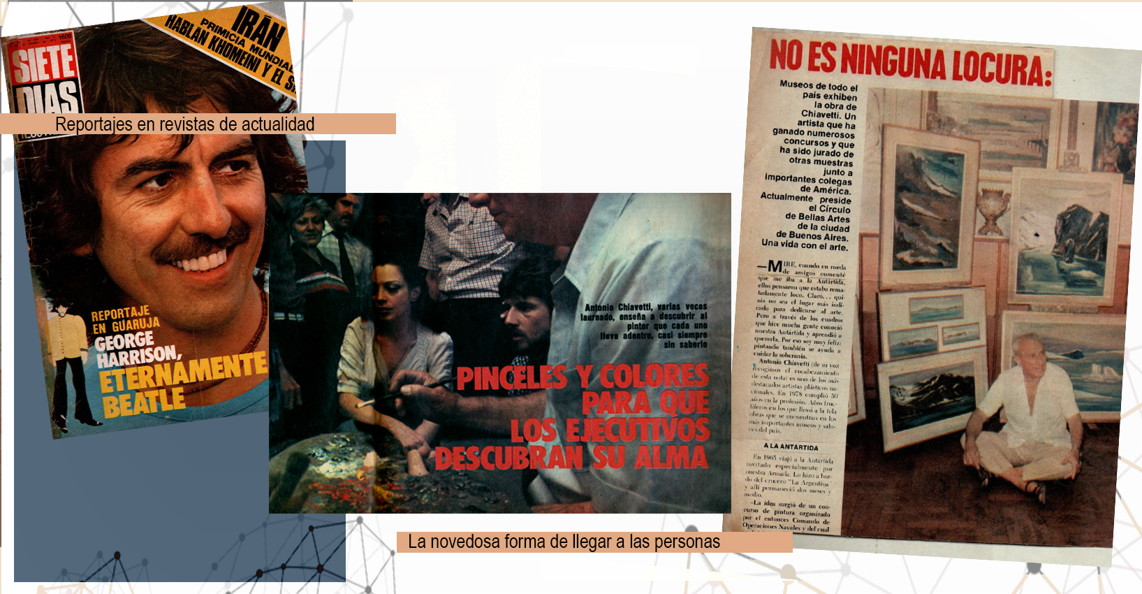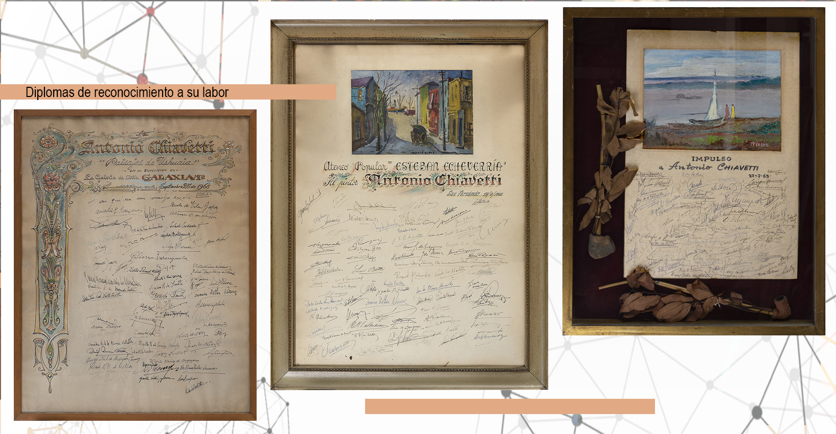 Sus obras forman parte de colecciones privadas y de museos tanto nacionales como extranjeros. Mujica Lainez, tomó como base para su novela “Los viajeros”, la vida de su padre Vicente Miguel Chiavetti.