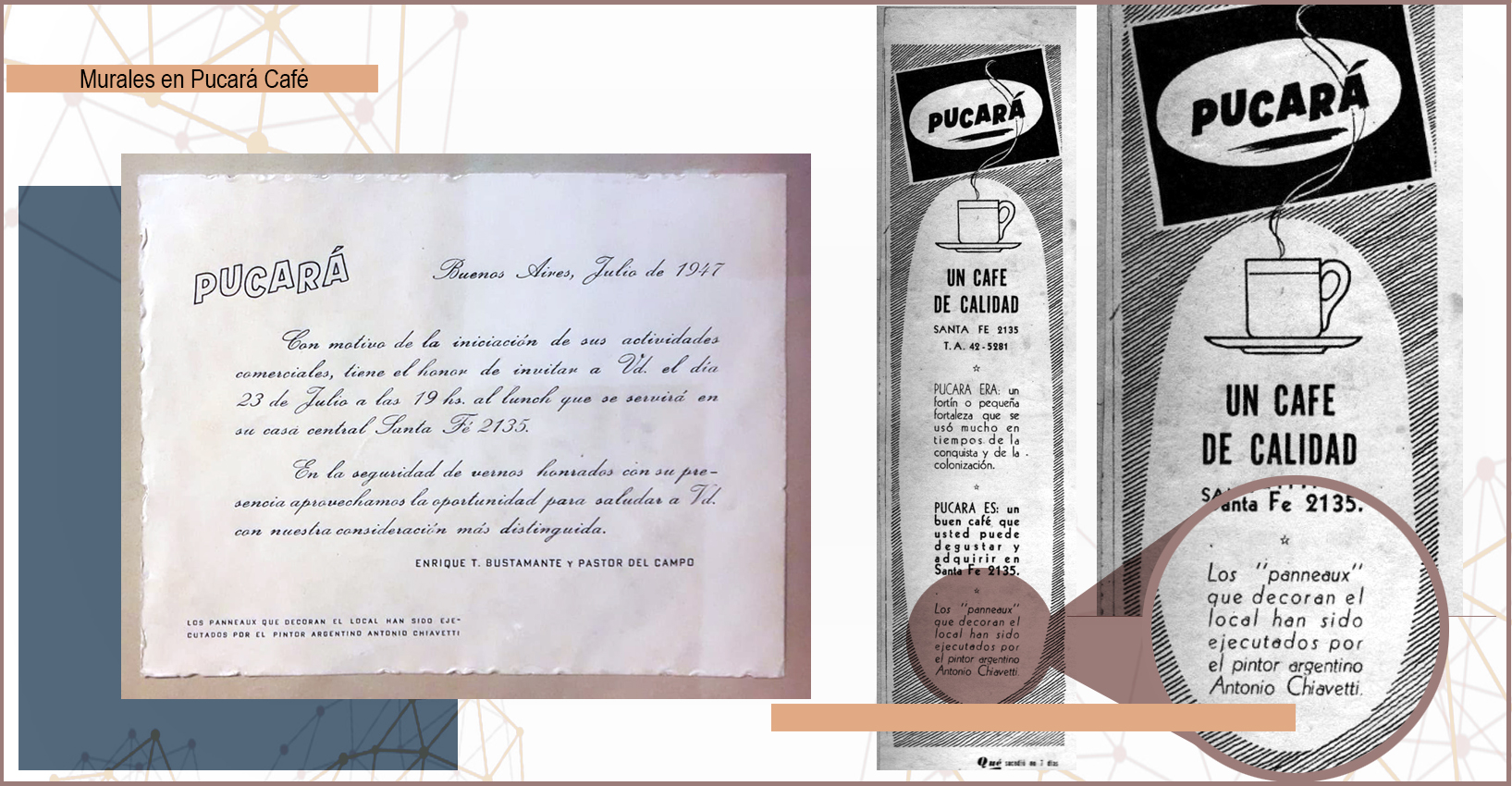 Murales realizados por Antonio Chiavetti en el año 1947, en una confitería que estaba en avenida Santa Fe 2135, en la ciudad de Buenos Aires,